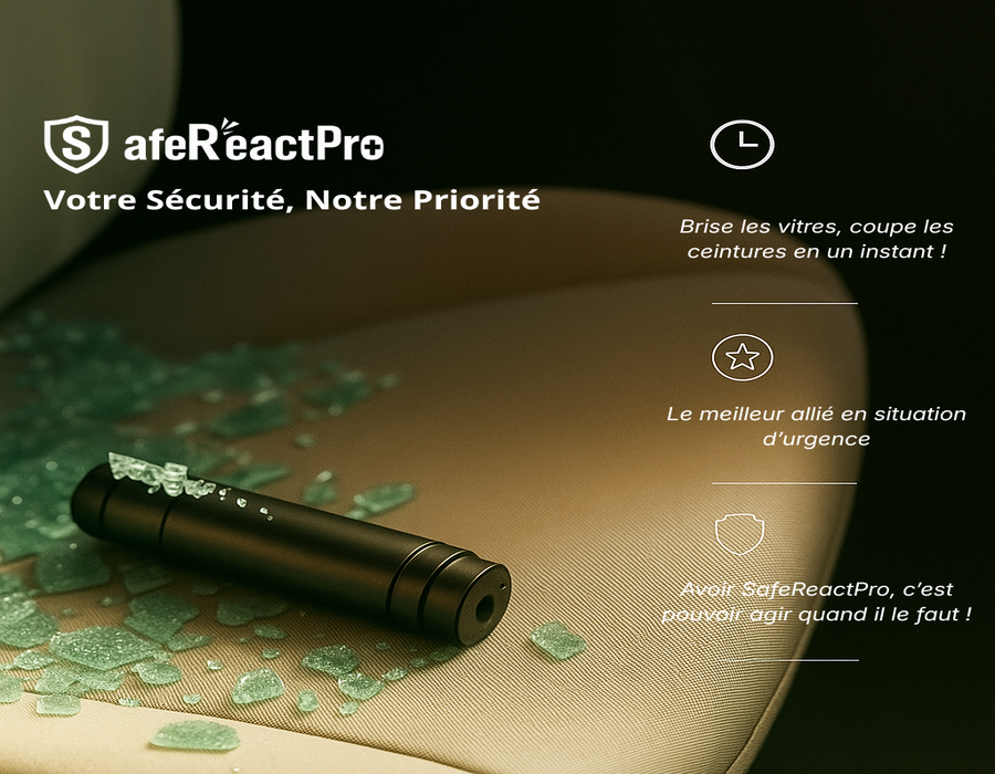 Le Brise-Vitre & Coupe-Ceinture SafeReactPro est l’outil indispensable pour tout conducteur souhaitant protéger sa vie et celle de ses proches.
